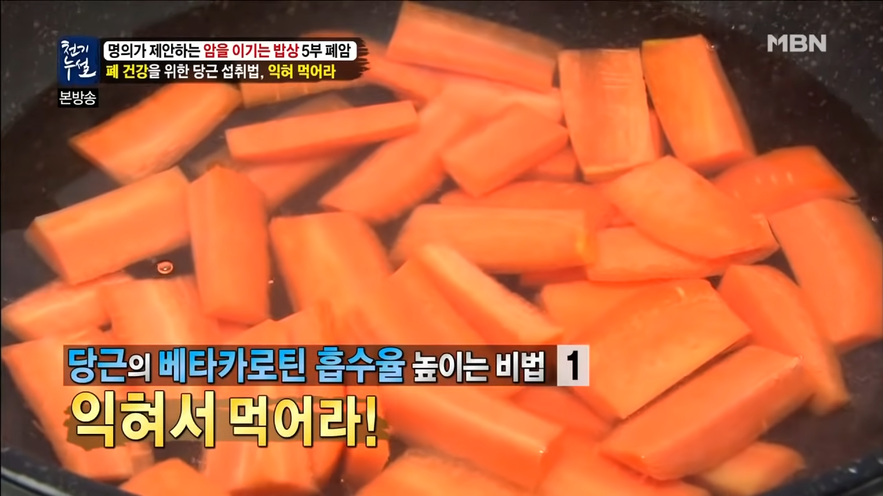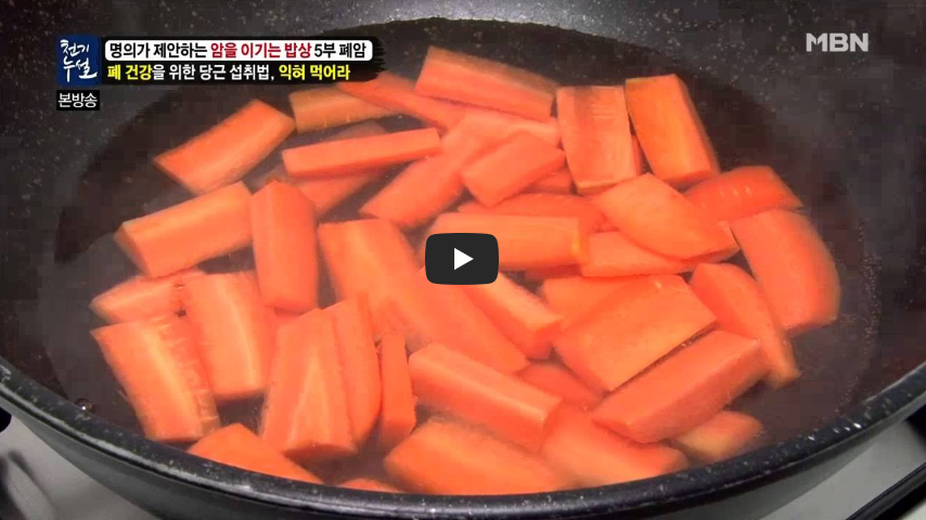 몸에 좋은 당근, 생으로 드시지 마시고 꼭 익혀서 기름과 함께 섭취해 폐 속 노폐물을 배출하고 폐 건강을 챙기시길 바랍니다.